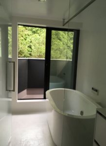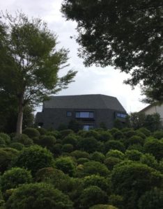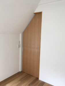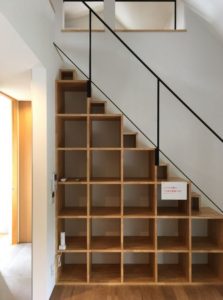 土地が変形地で東西に長い敷地のため、斜線制限が建物全体にかかってしまいますが、そのような厳しい建築制限がある土地ほど建築家さんに依頼する価値は大きくなると思います。今日拝見したお宅も収納と兼用になった階段や斜線制限に合わせて造作された建具、都内とは思えない緑を眺めながら入れる浴室など見どころがいっぱいでした。