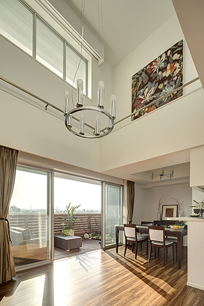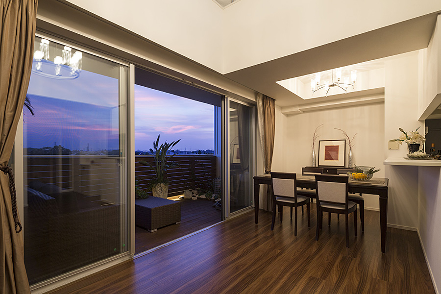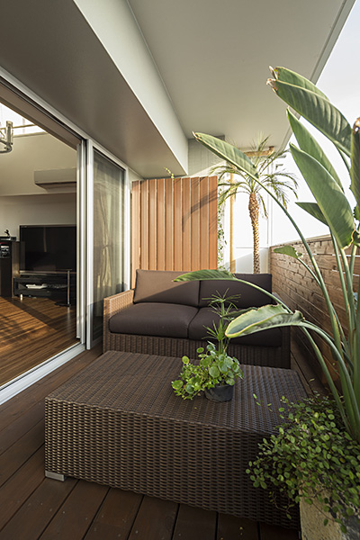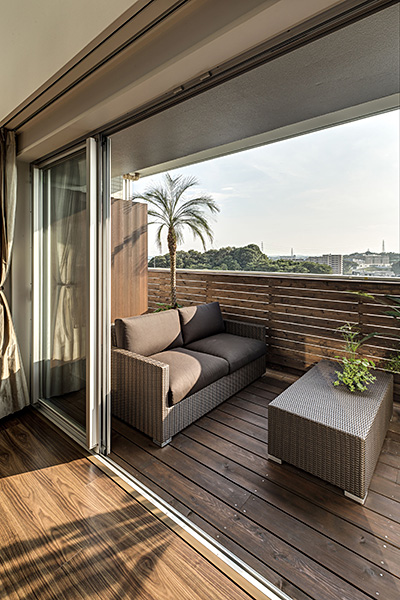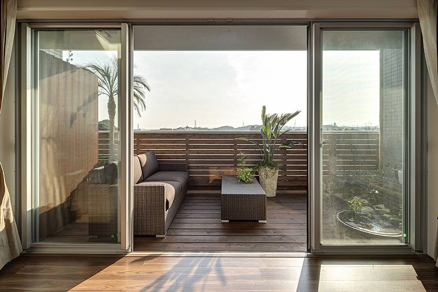 ご夫婦の要望は、バルコニーにデッキを敷きリビングとの連続性でした。つまり言い換えれば、バルコニーを「リビングの延長」として活用したいという要望ですが、バルコニーという外部空間とリビングの内部空間を連続させようと考えた時、単純にデッキを敷くだけでは、要望の理想空間にはならないと感じました。