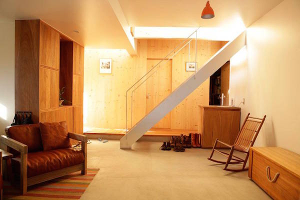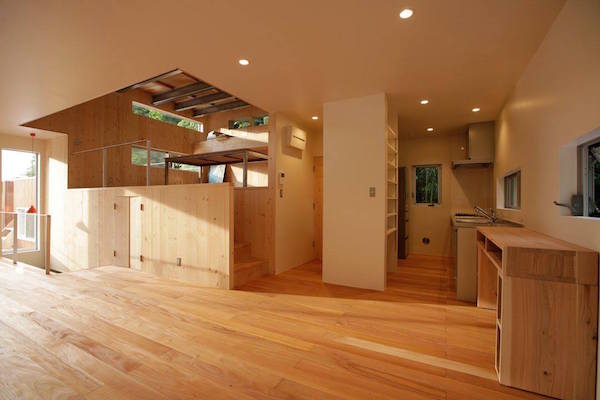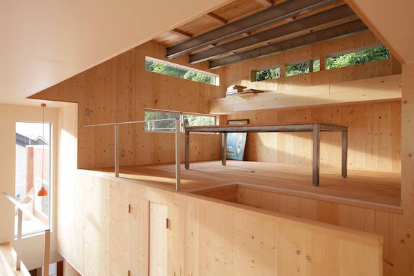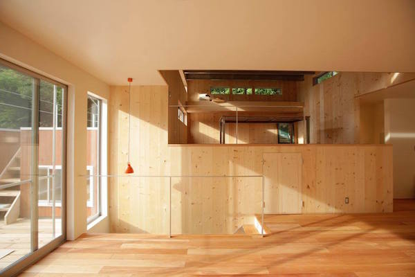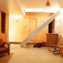 1階部分には薪ストーブのある応接間と個室、2階部分にはLDKと家族全員で使うワークスペースがあります。 海の側に建つ家らしく、開放的でおおらかな空間となっています。