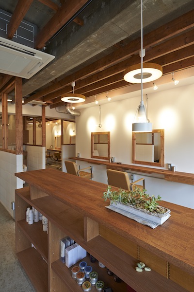 東京都文京区千駄木のよみせ通りにある美容室です。 築40年以上経ったビルの1階にあり、古くから有る建物と違和感のないファサードになっています。 コンクリート躯体に、木材や白い壁を配した清潔感のある店内と、友人の家のダイニングにいるような、ゆったりした心持ちになれる待合が特徴です。 https://uruwashido.com/